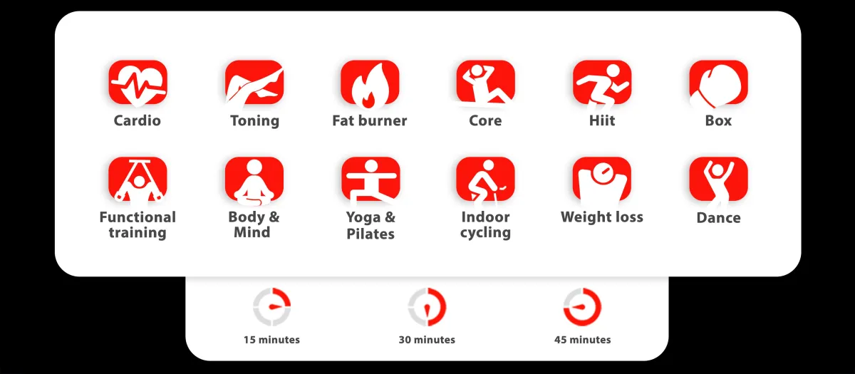 With Radical Virtual, your club can offer 28 different training programs 24/7 — from yoga and pilates to boxing, classes for seniors, beginners, and much more.
