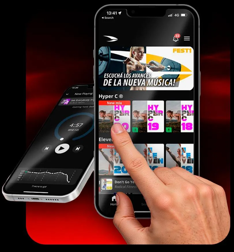 Manage your class music directly from your smartphone or smartwatch (Apple or Android) and connect it to your sound system. Adjust the class energy in real time with total ease.